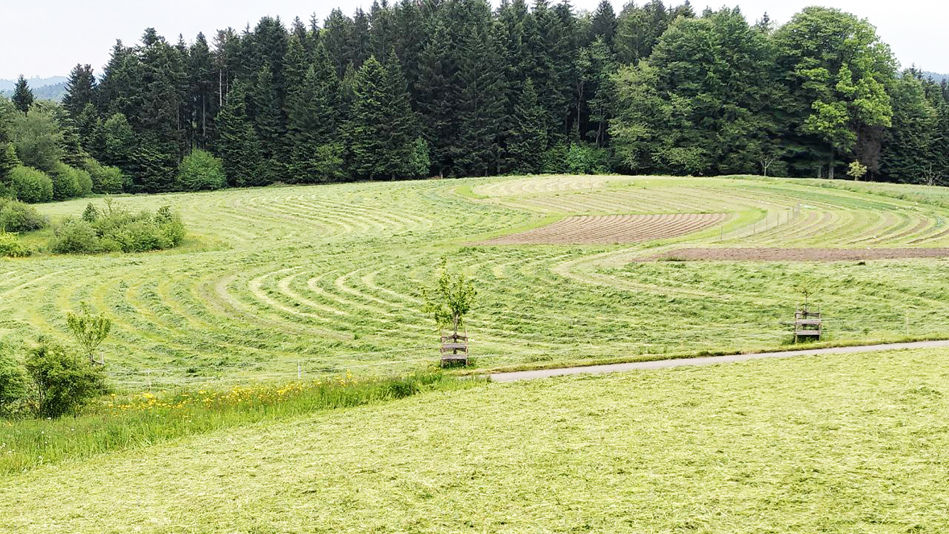 Der Katzhof im Kanton Luzern ist ein wegweisendes Referenzprojekt von internationalem Rang. In der planerischen Verantwortung von Baumfeldwirtschaft entstand hier zusammen mit den Bewirtschaftern Markus Schwegler und Claudia Meyerhans eines der ersten modernen Wässersysteme Europas, das die bekannten Unzulänglichkeiten des klassischen Keyline Design überwindet und konsequent die Anforderungen der heutigen Landwirtschaft an funktionale Wässersysteme erfüllt.